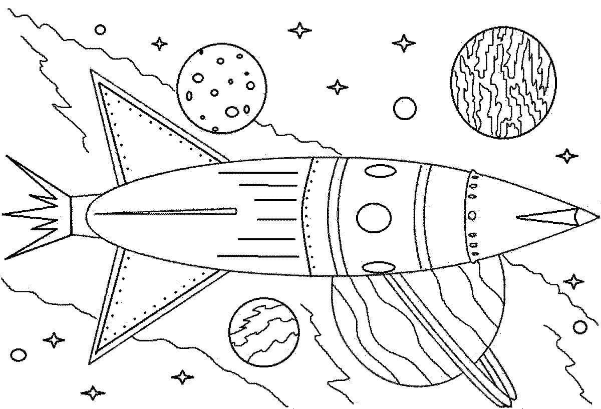 Раскраска ракеты в космосе для детей
