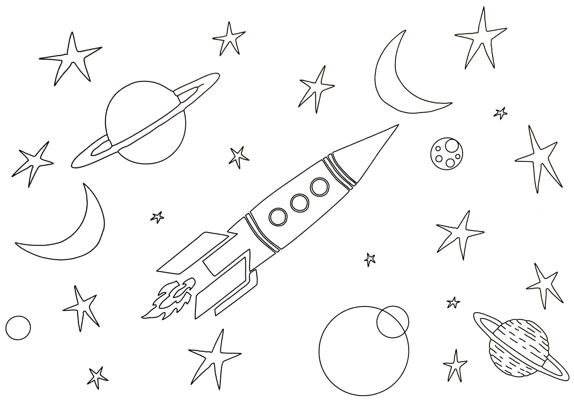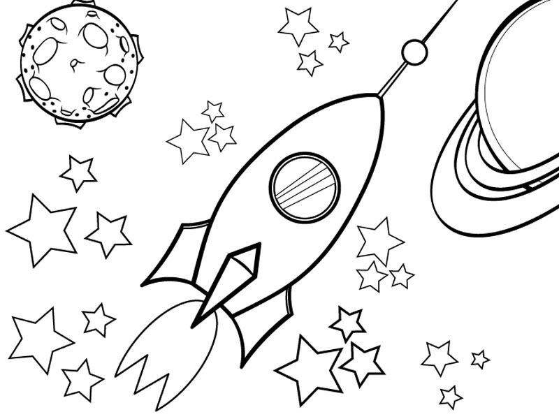 ![Раскраска ракеты в космосе для детей]()