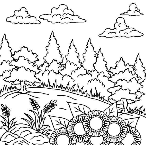 Раскраска пейзаж природы