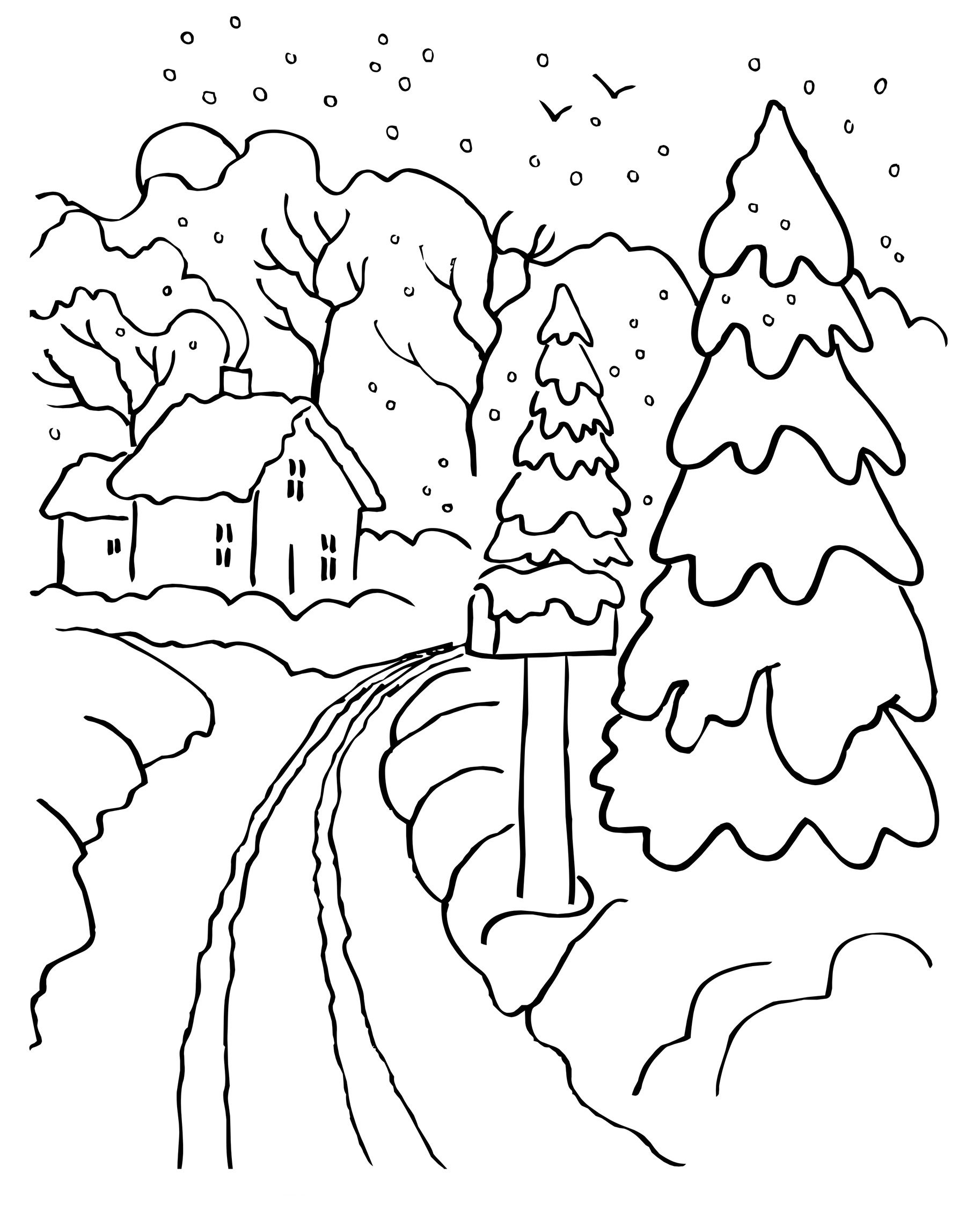 Зимний пейзаж для раскрашивания детям