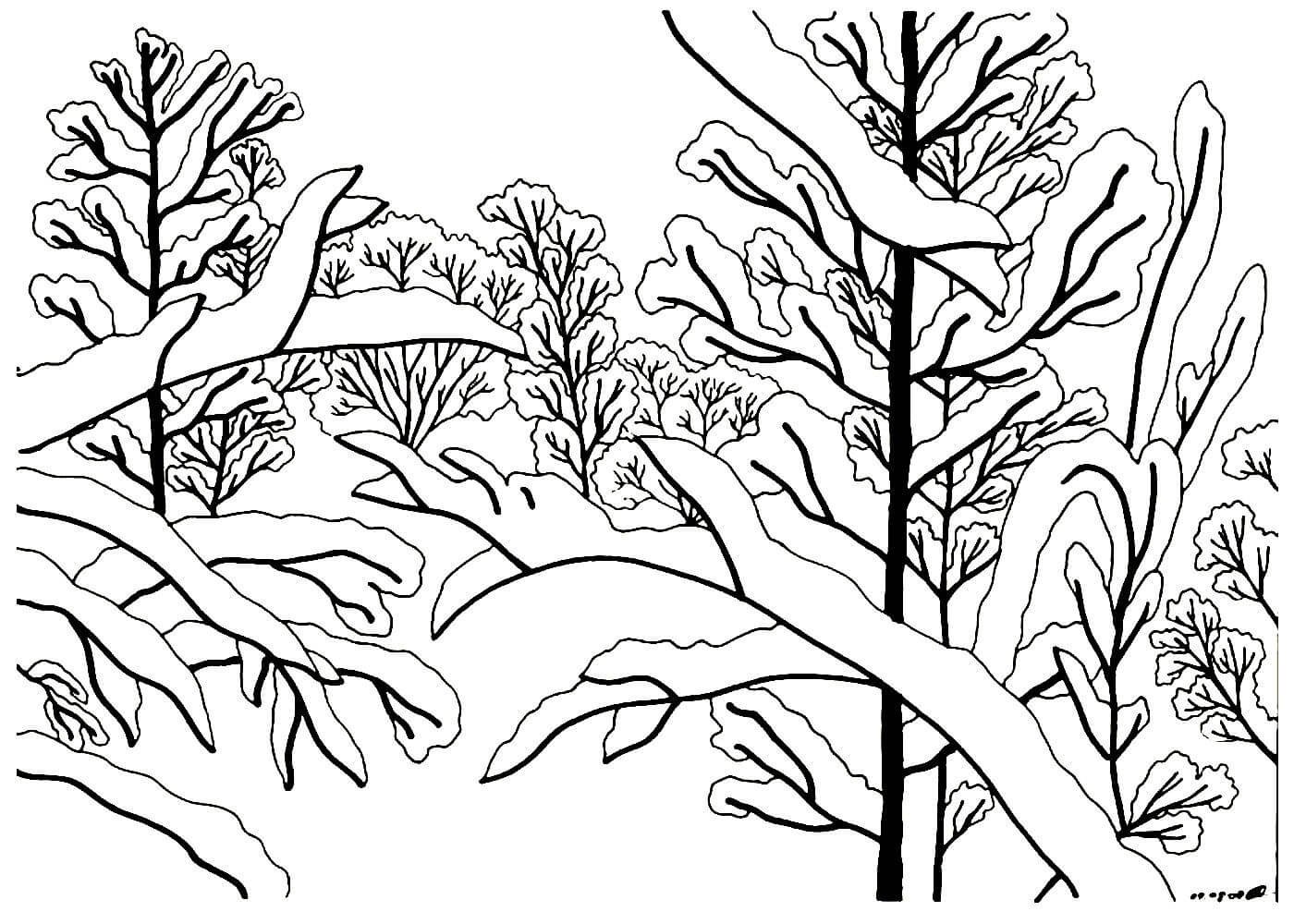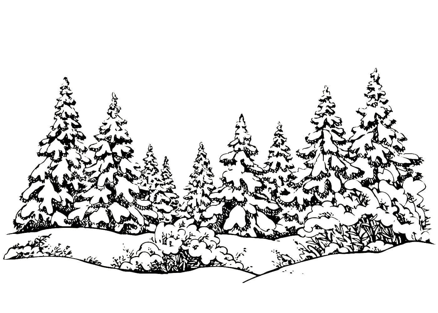 ![Зимний лес раскраска]()