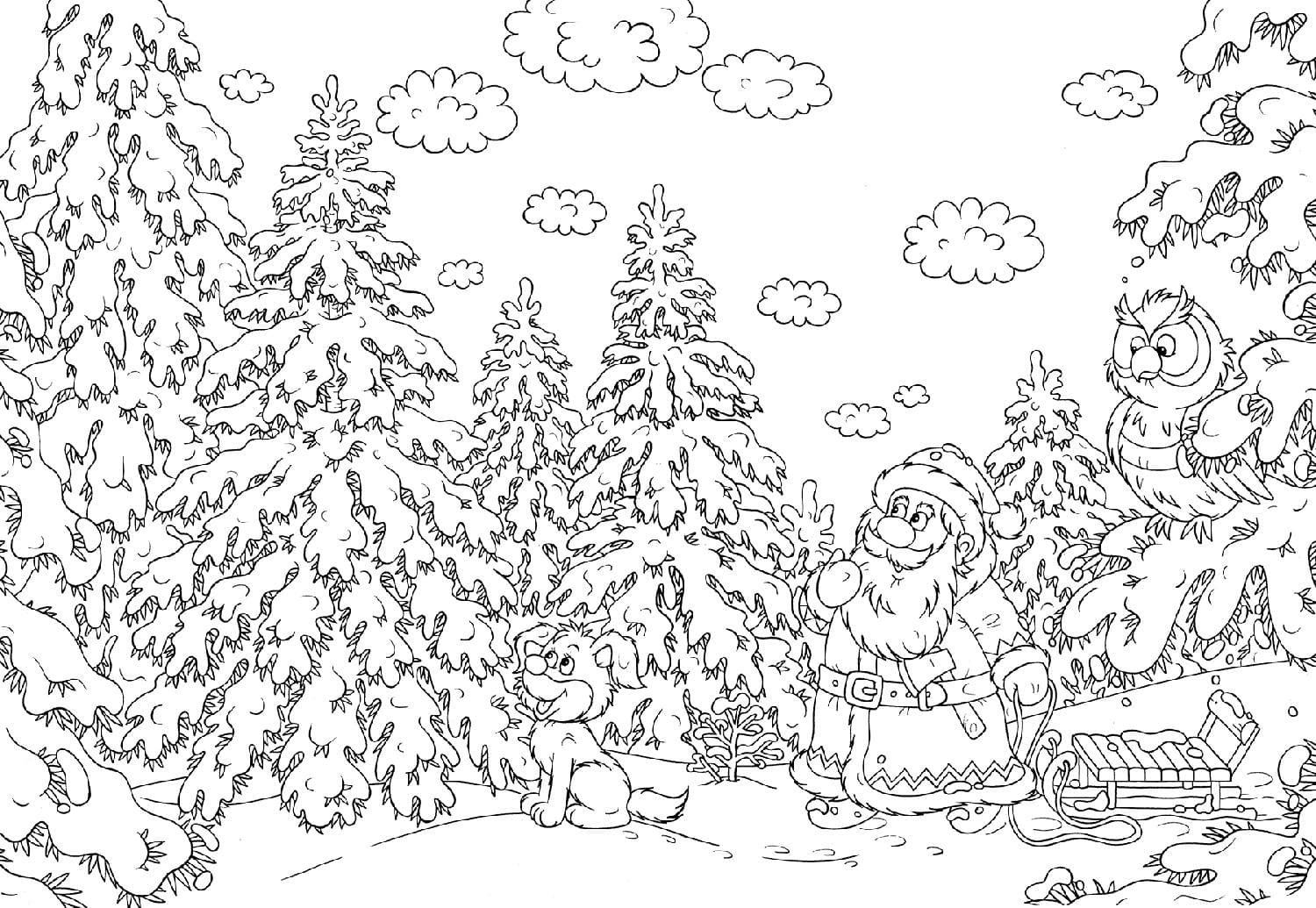 ![Зимняя раскраска]()