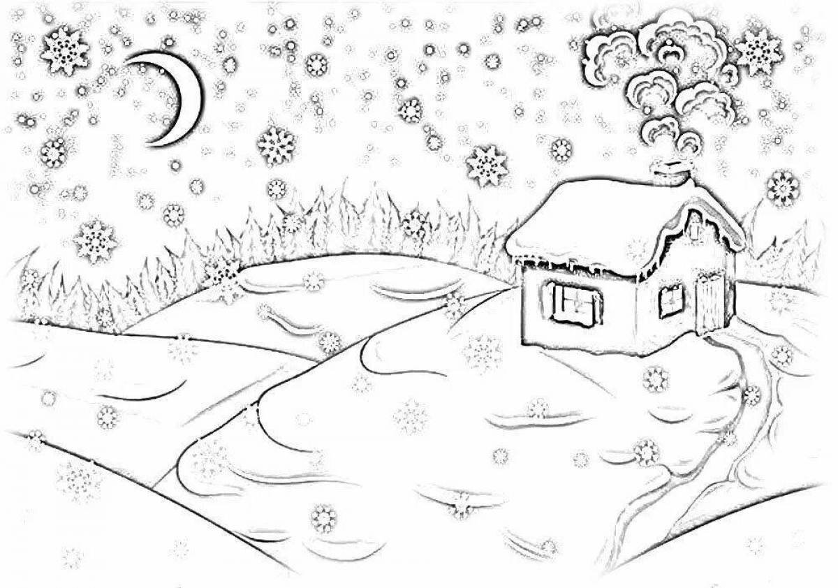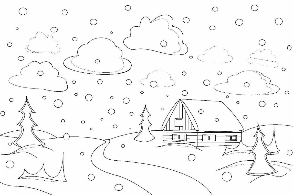 ![Зимний пейзаж для раскрашивания детям]()