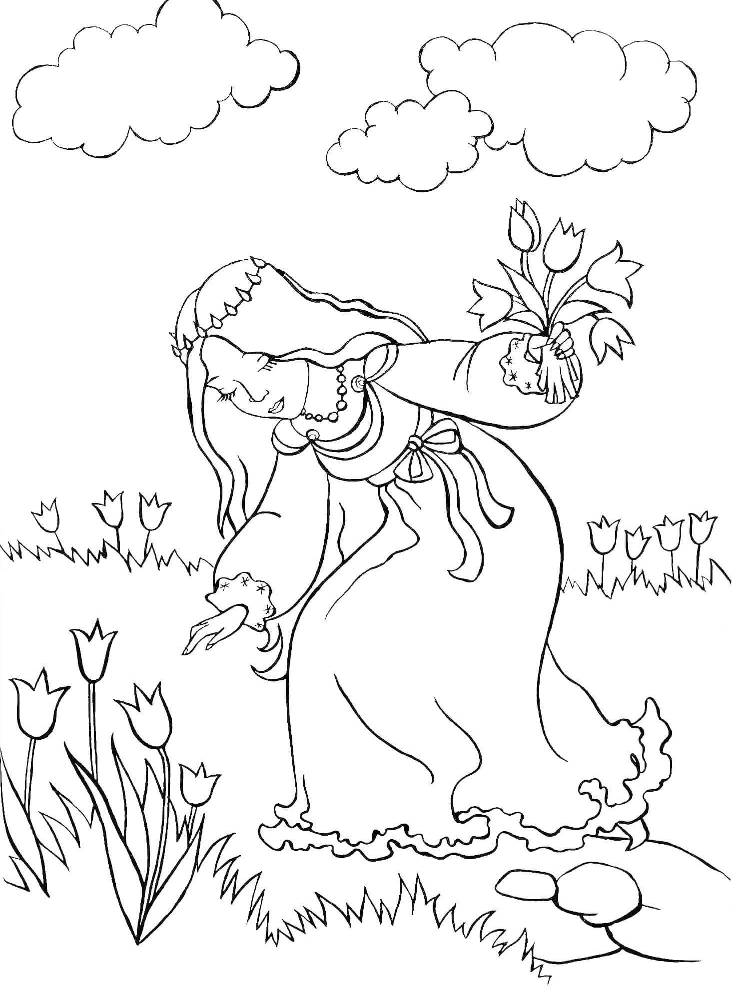 Девушка Весна раскраска