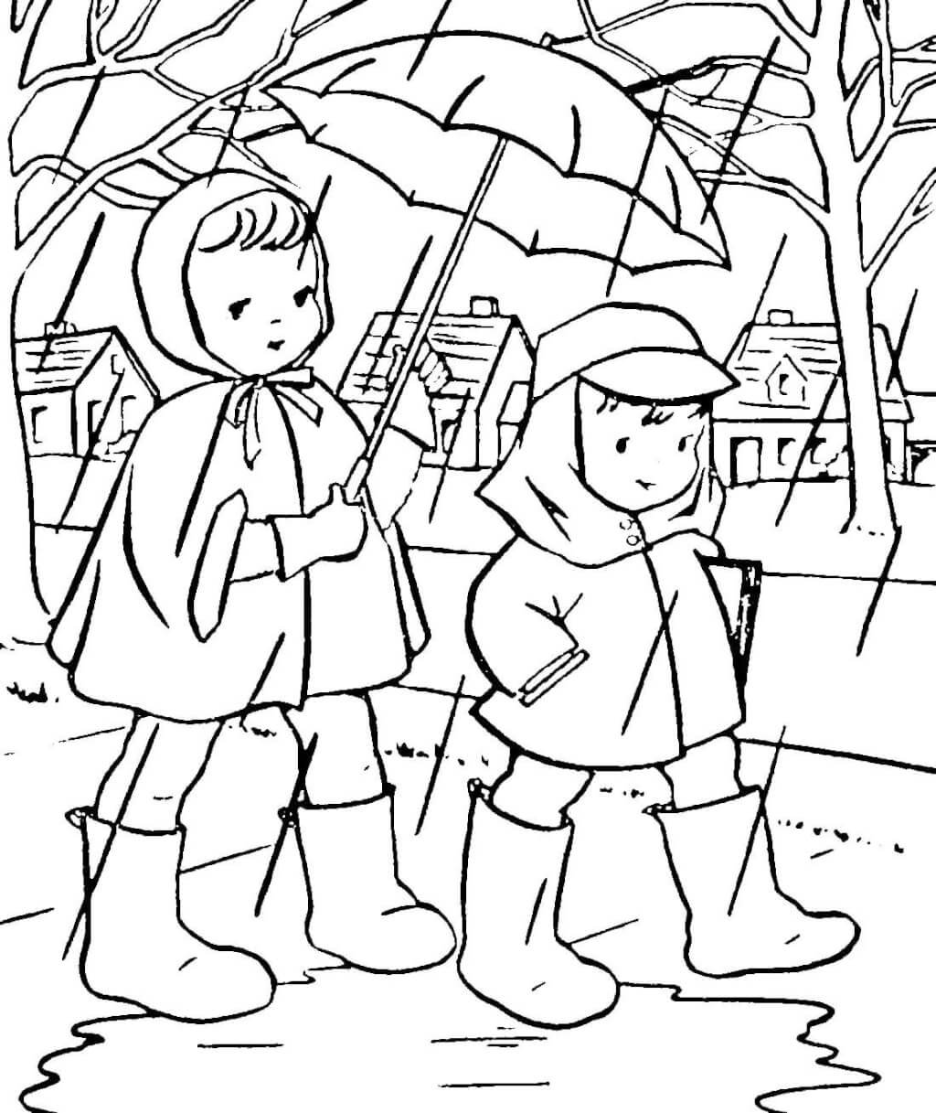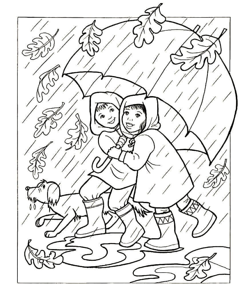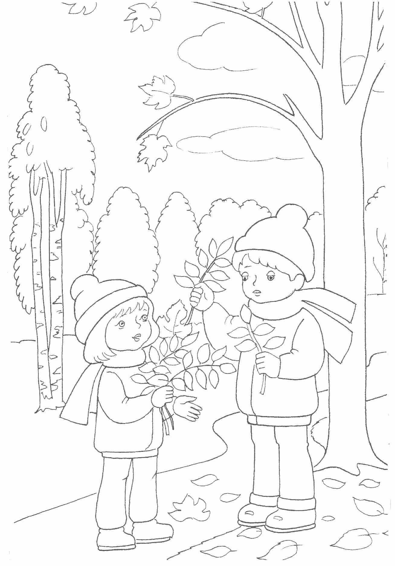 Осенняя прогулка раскраска для детей