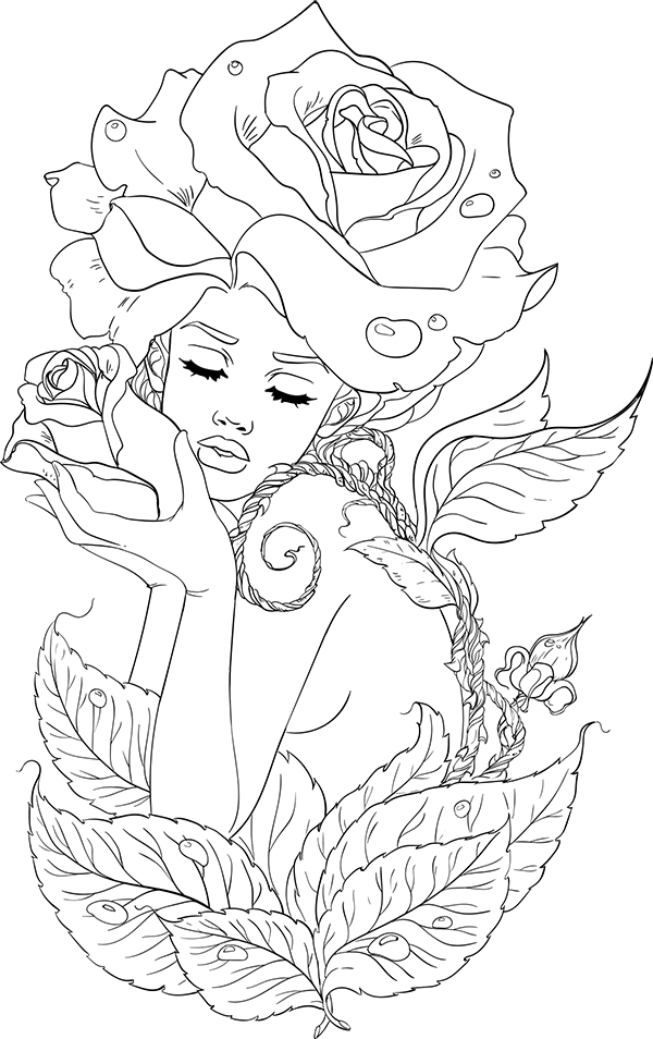 ![Раскраска девушка в цветах]()