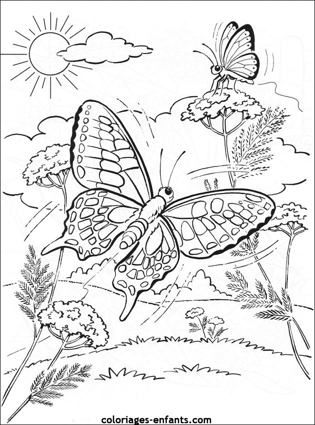 ![Раскраски пейзаж с бабочками]()