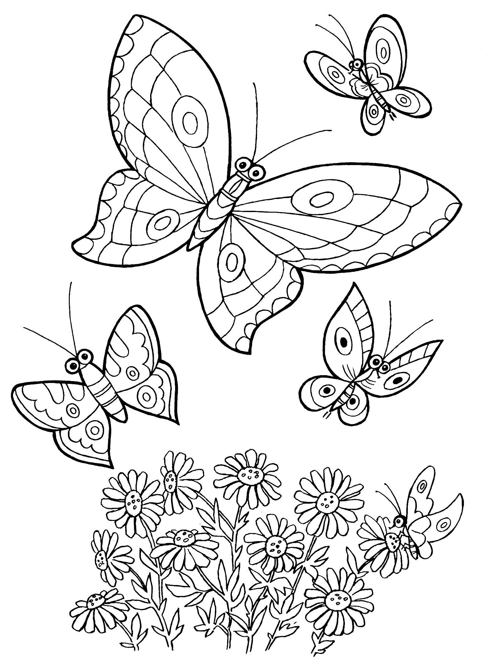 Раскраски для девочек цветы и бабочки