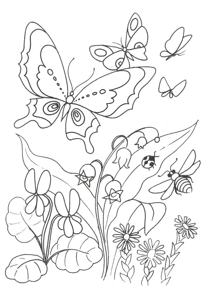 Бабочки на Поляне раскраска