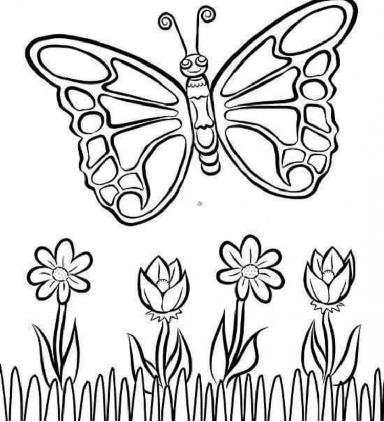 Бабочка на цветочке раскраска