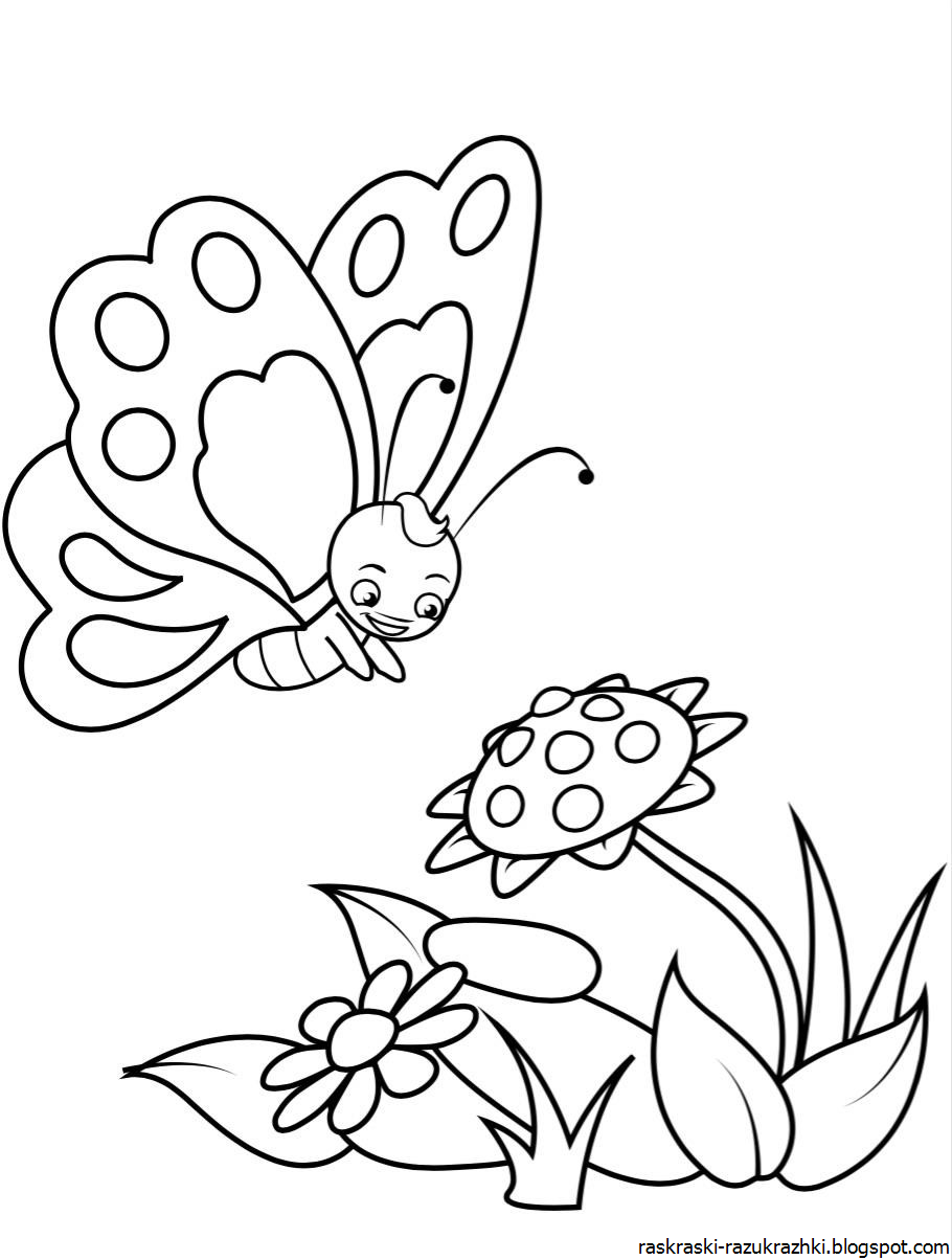 Бабочка на цветке раскраска для малышей