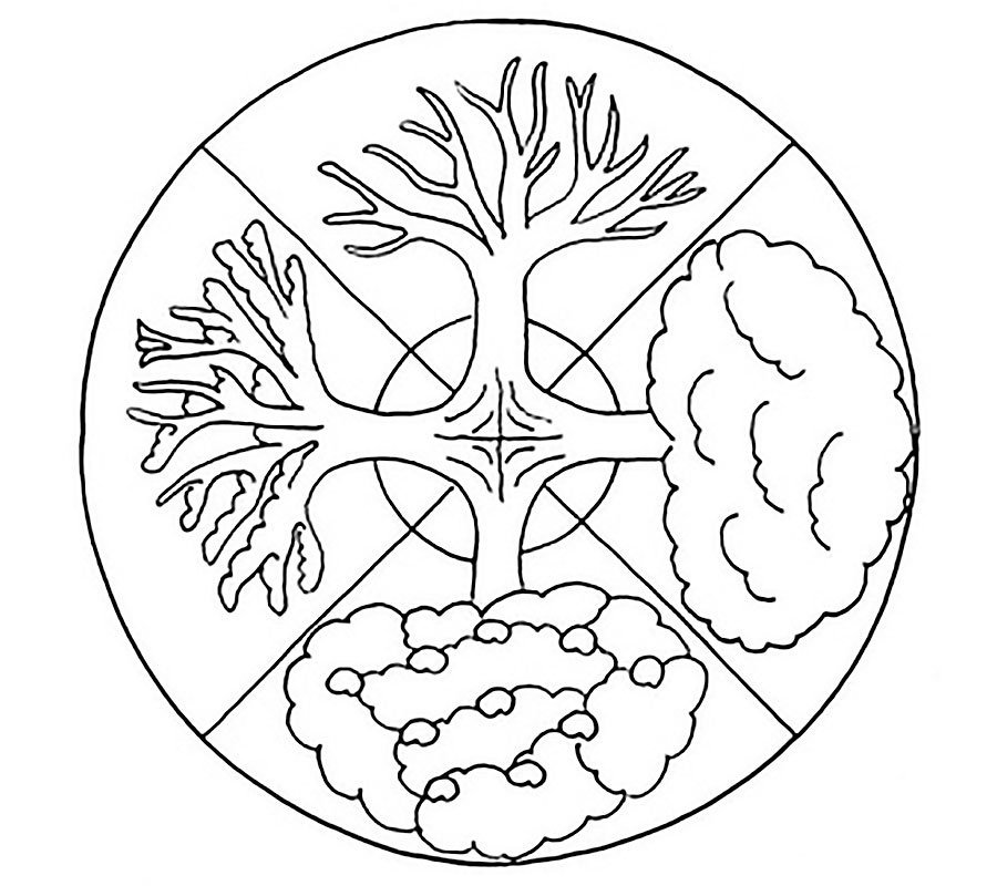 Природа в круге для раскрашивания