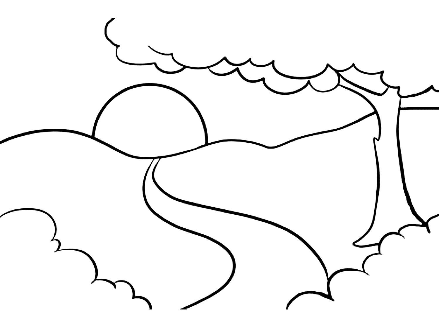 ![Пейзаж раскраска для детей]()
