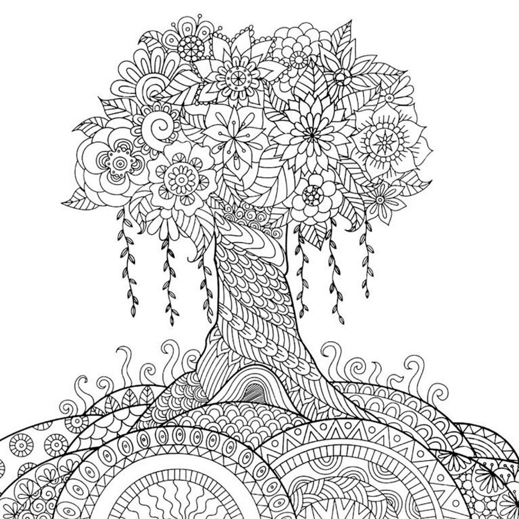 Раскраска антистресс дерево