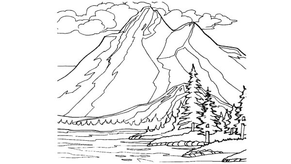 ![Горный пейзаж раскраска]()