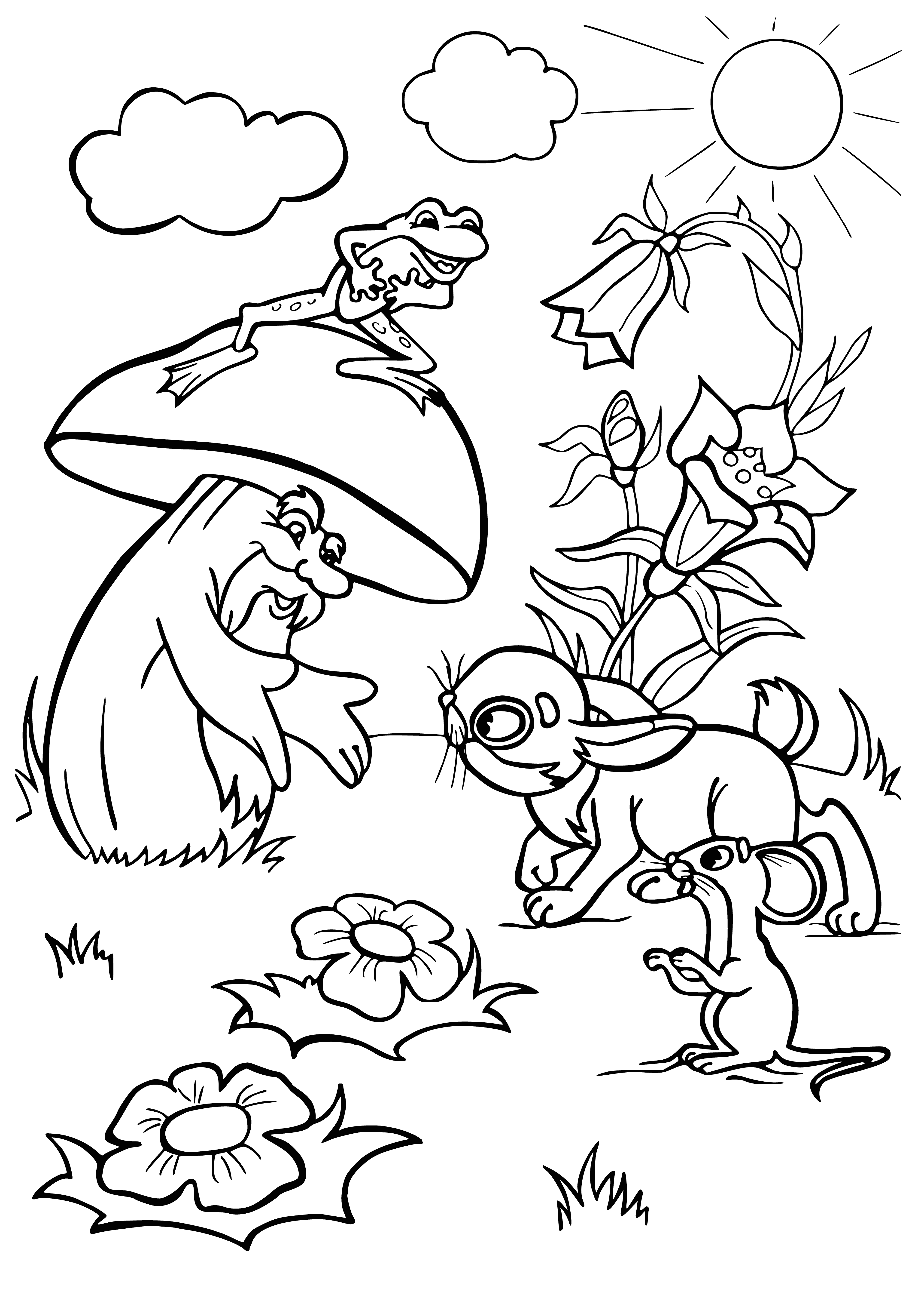 Раскраски по сказкам Сутеева для детей под грибом
