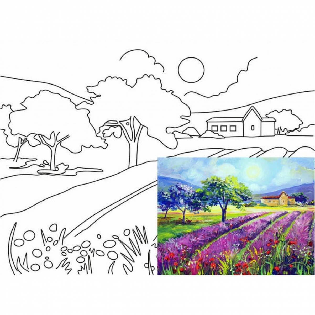 ![Пейзаж для раскрашивания красками]()