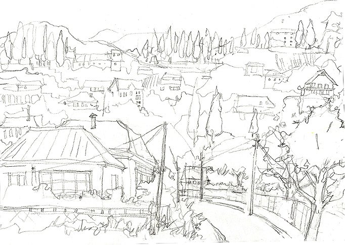 Пейзаж рисунок карандашом