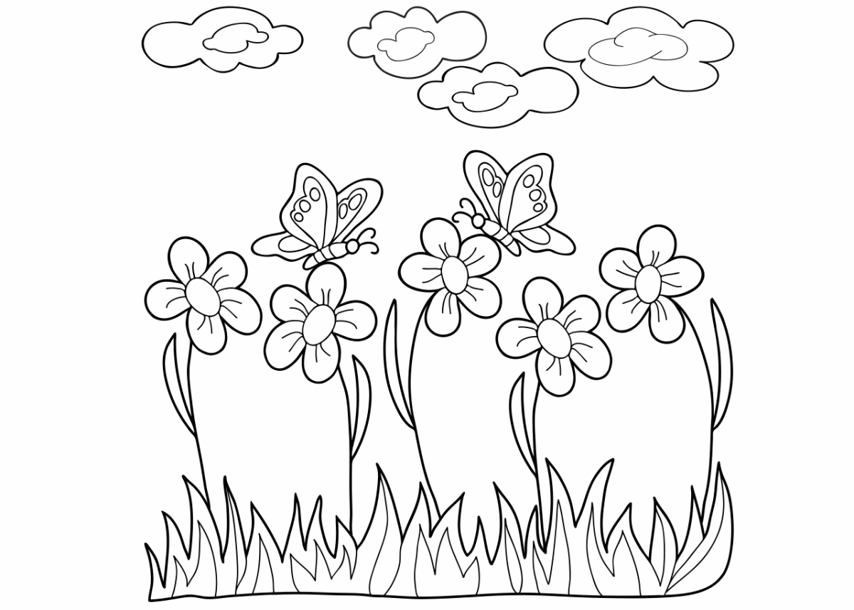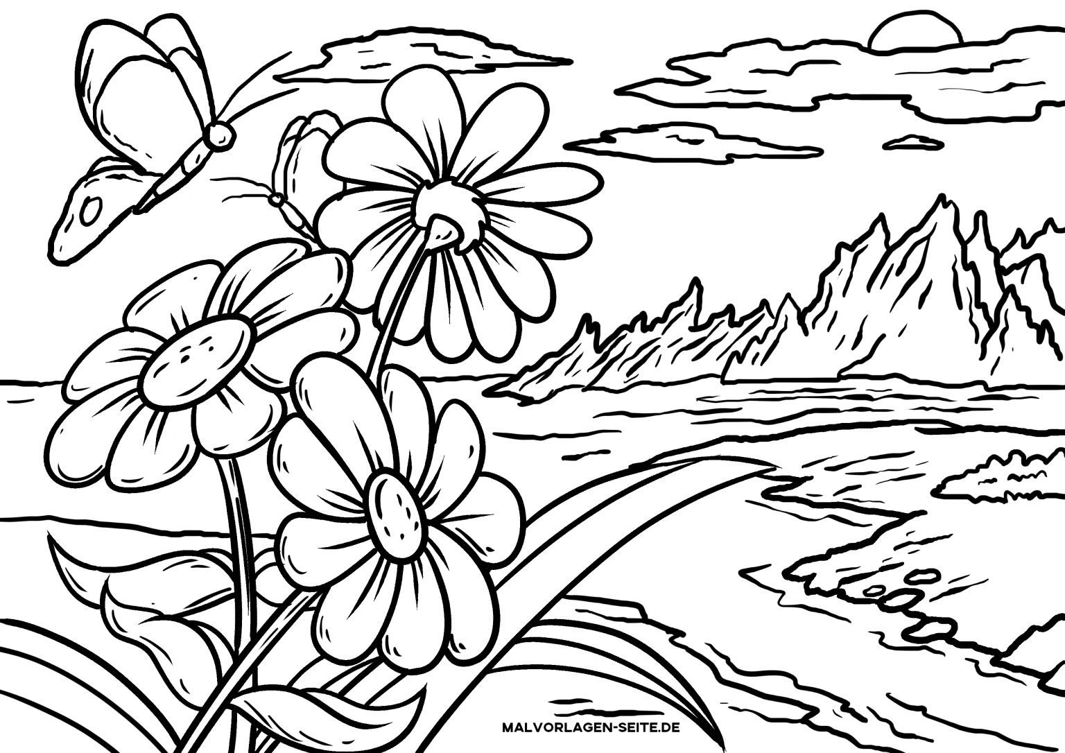 Раскраска пейзаж цветы