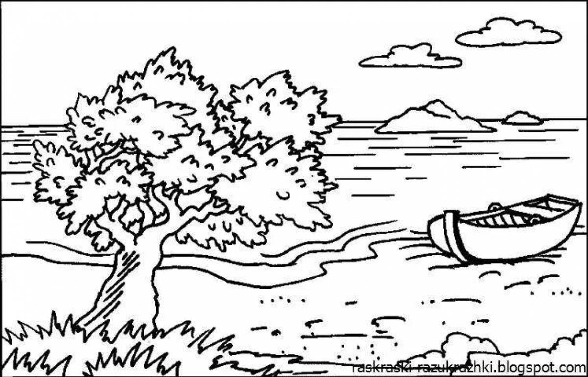 ![Раскраска Речной пейзаж]()