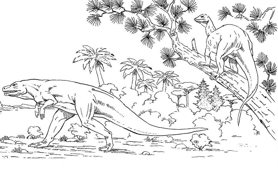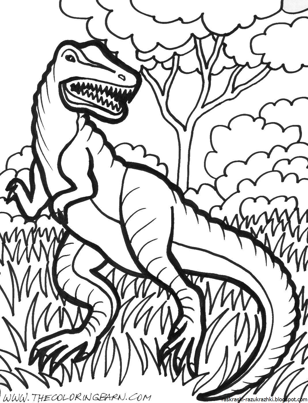 ![Динозавры мир Юрского периода Аллозавр раскраски]()