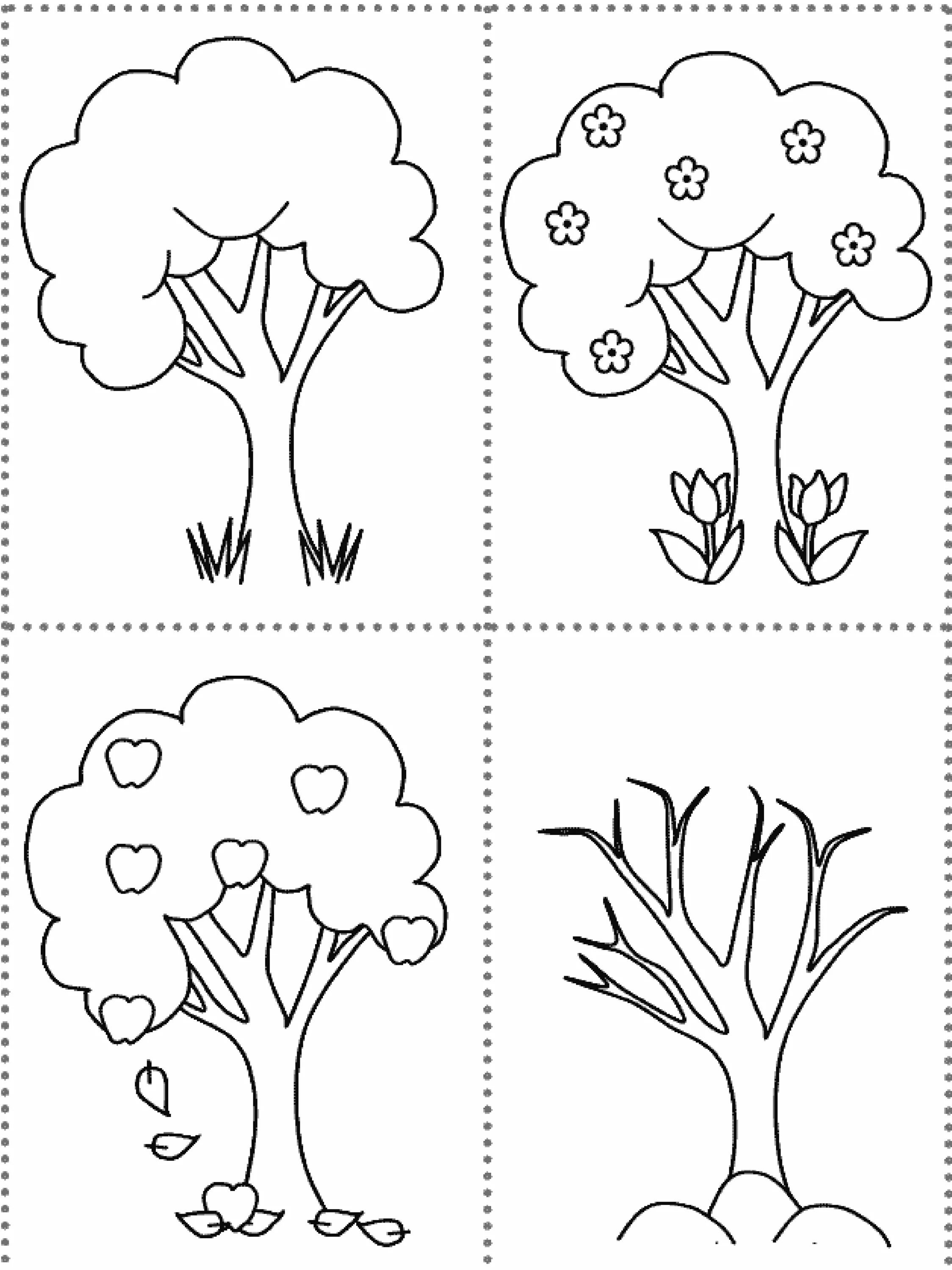 ![Дерево по сезонам раскраска для детей]()