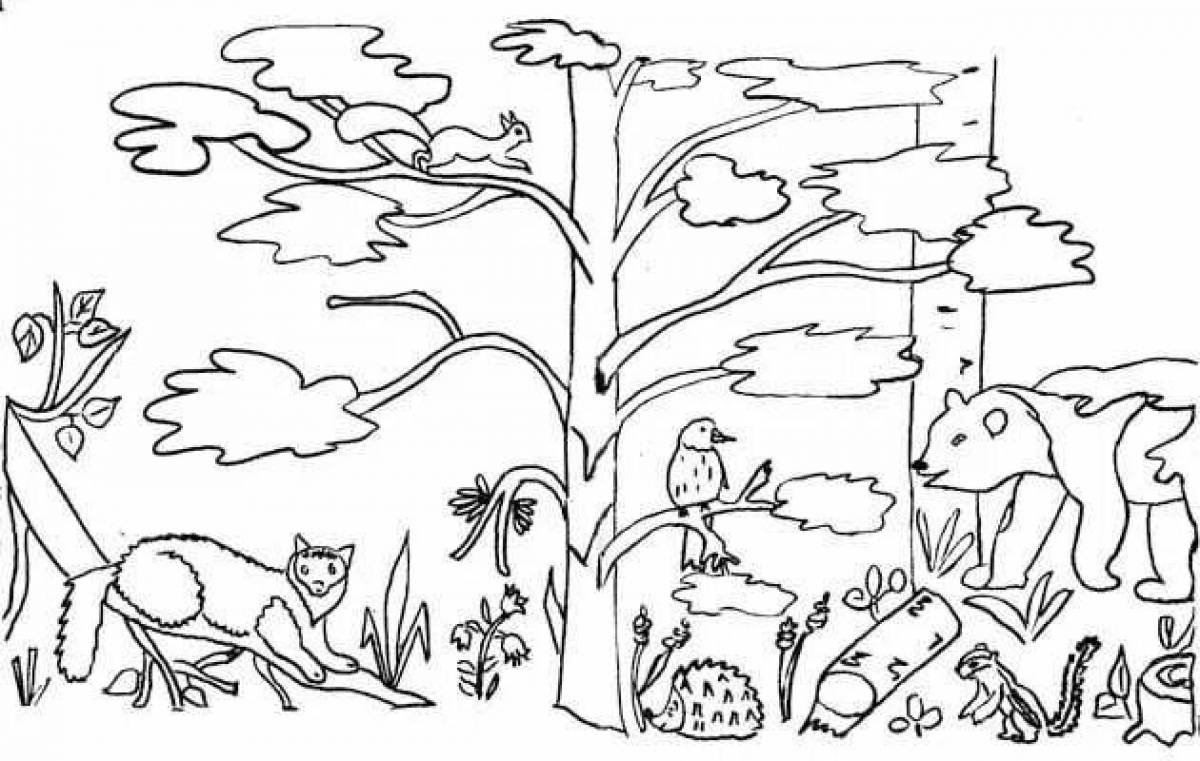 Звери на природе раскраска