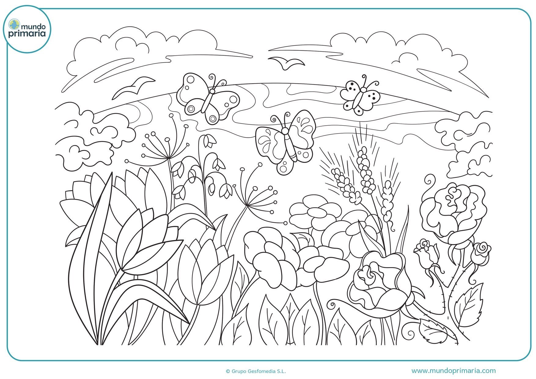 Раскраска пейзаж цветы