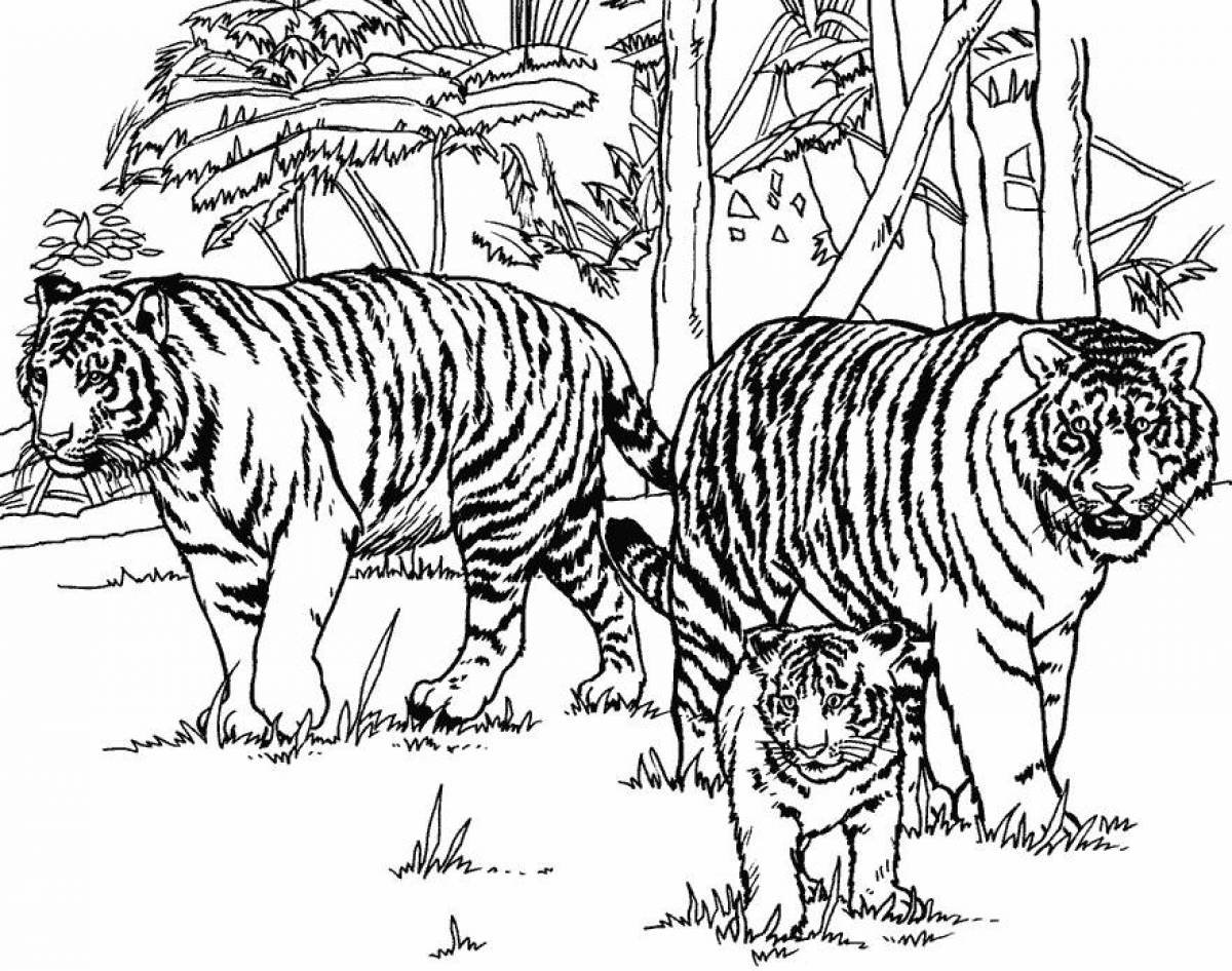 ![Раскраски тигры и тигрята]()