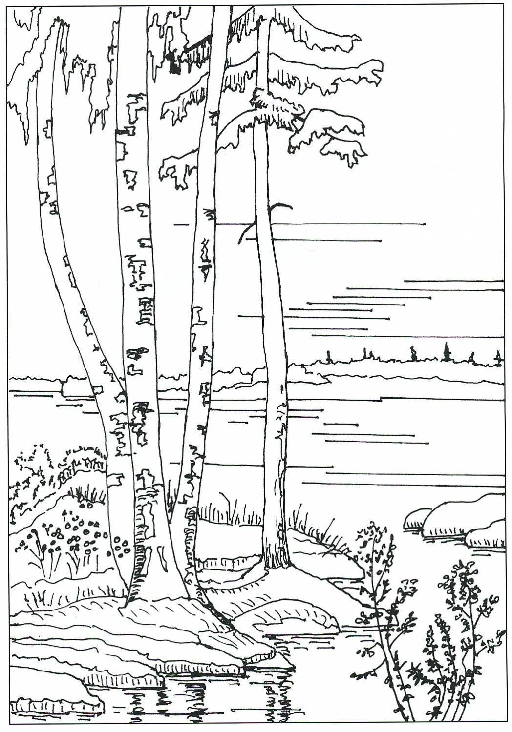 ![Русская природа раскраска]()
