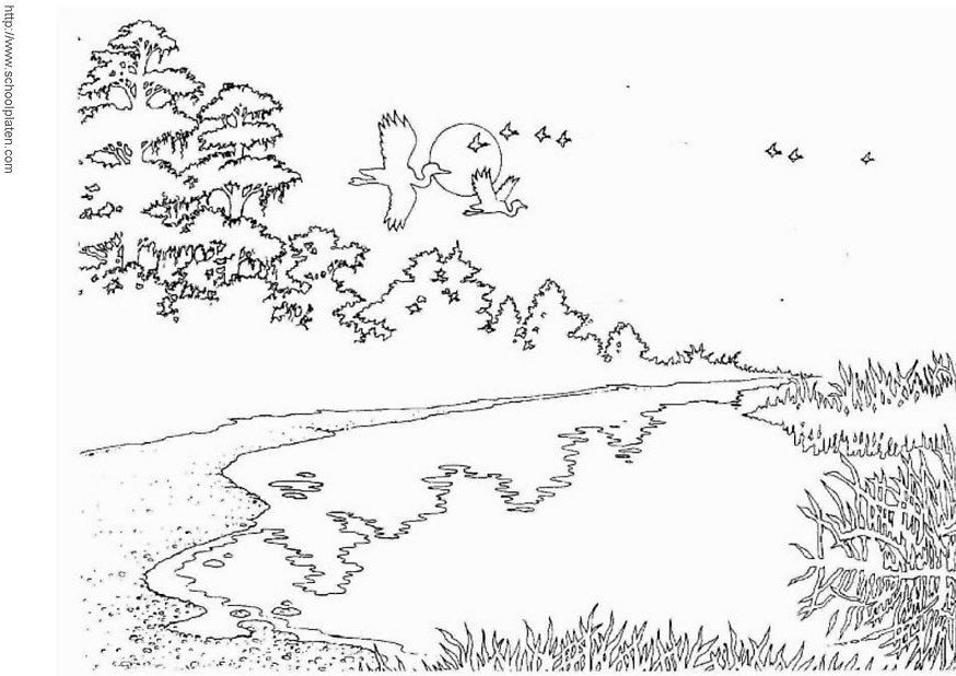 ![Раскраска Речной пейзаж]()
