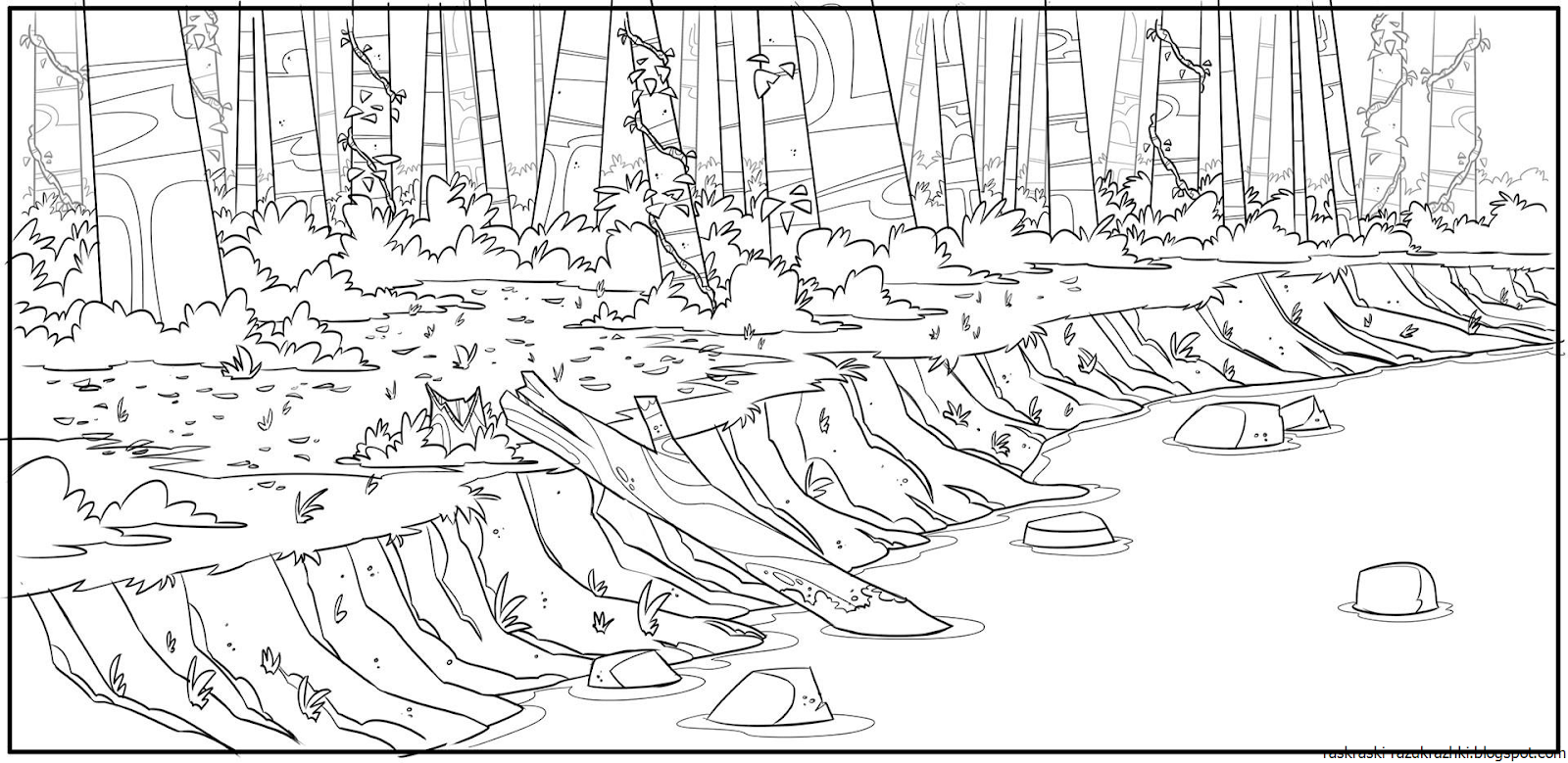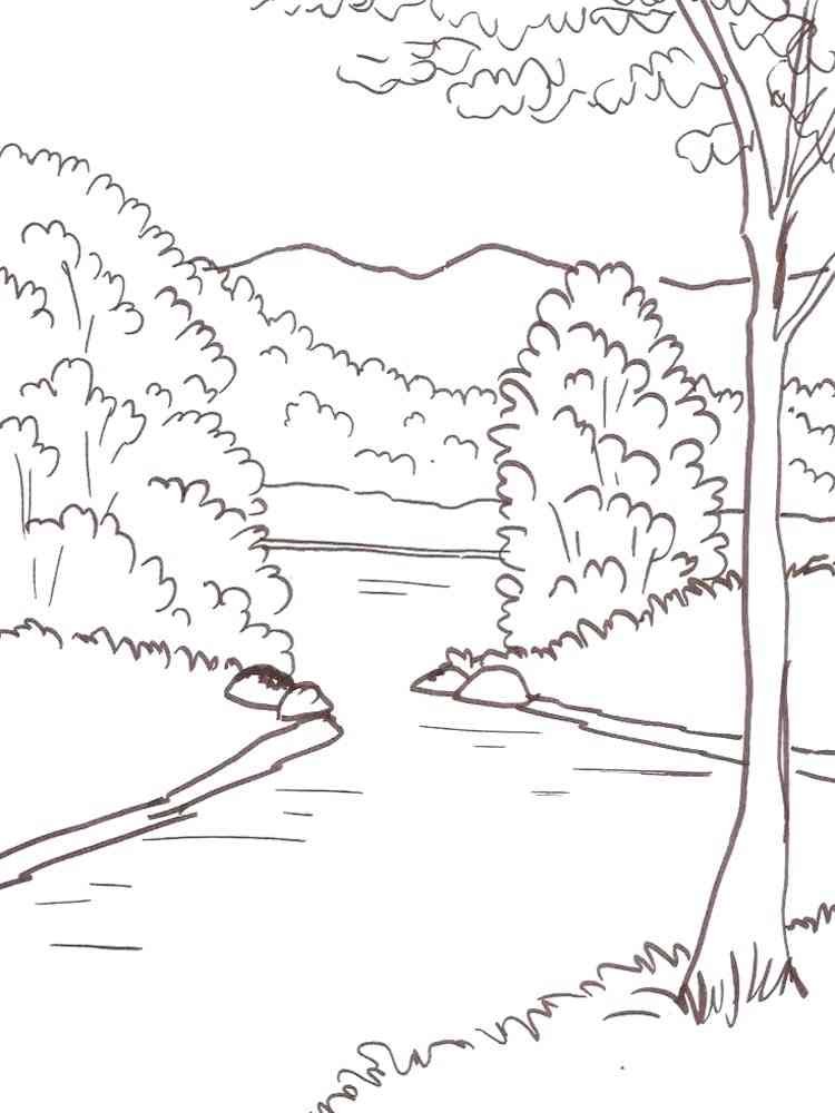 Лес и река раскраска для детей