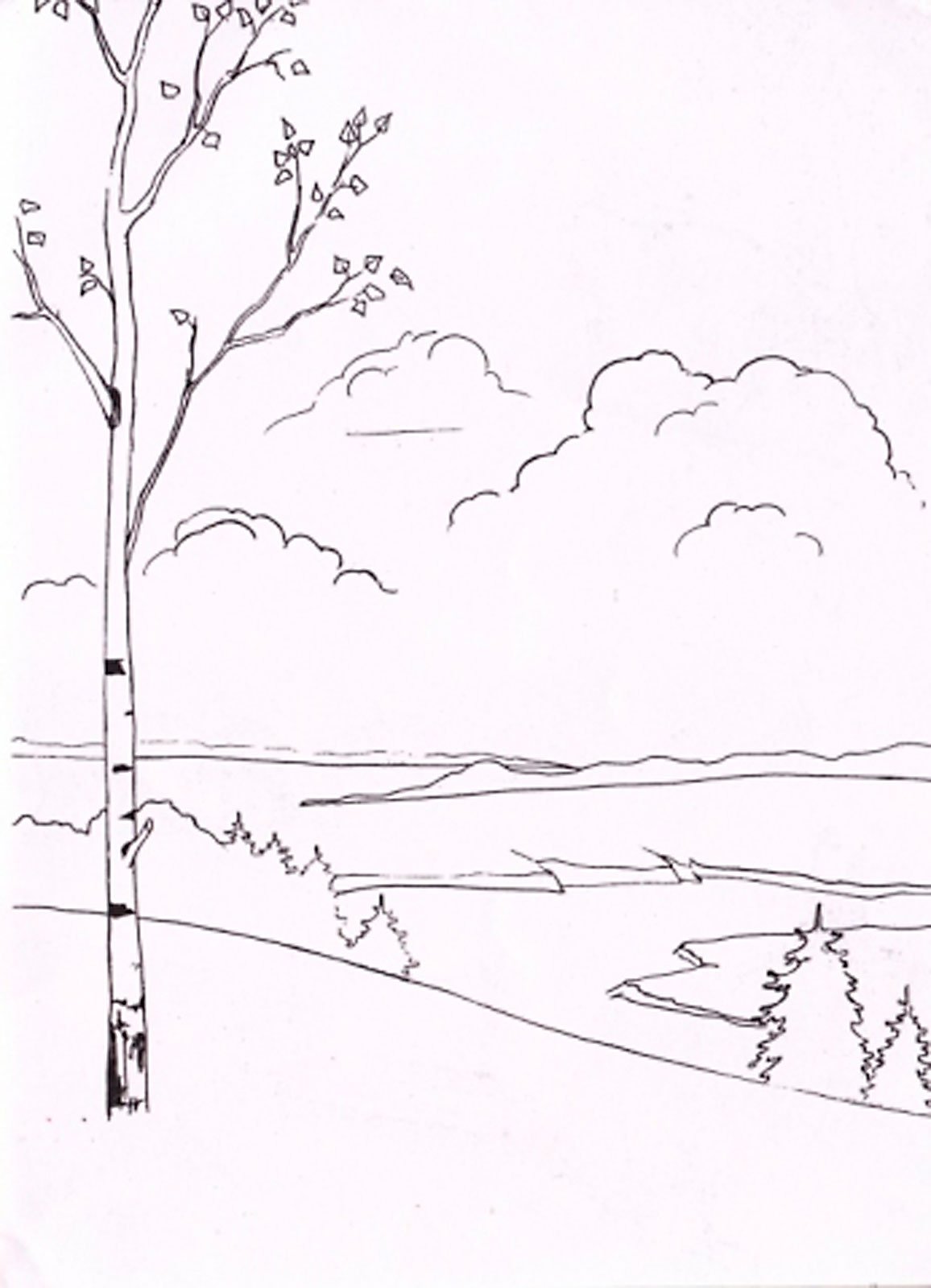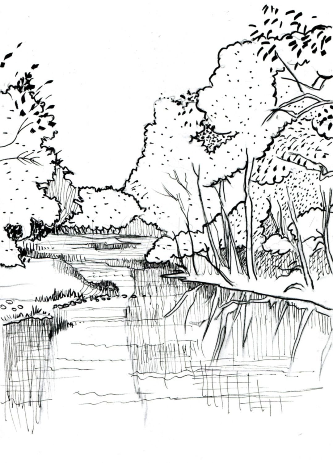 Пейзаж набросок для детей