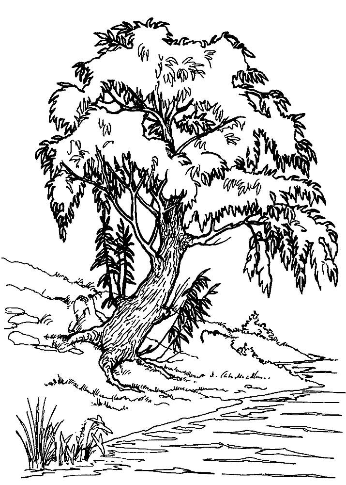 ![Раскраска дерево Ива]()