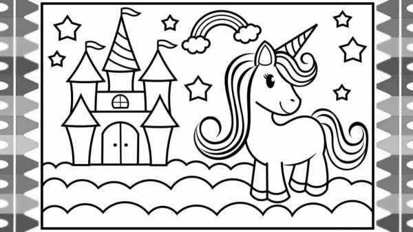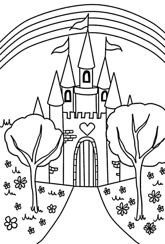Замок с радугой раскраска
