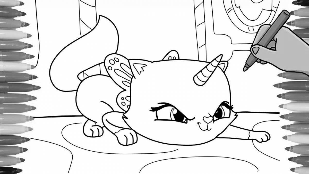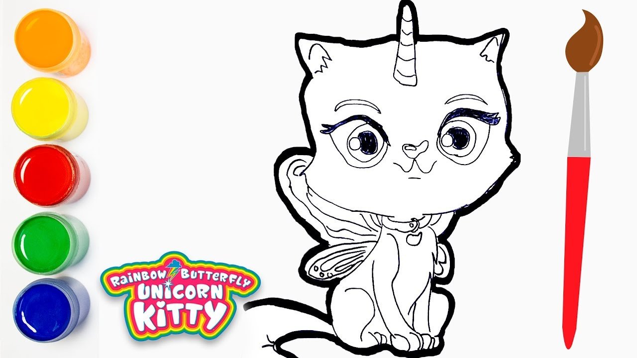![Радужно-бабочково-Единорожная кошка раскраска]()