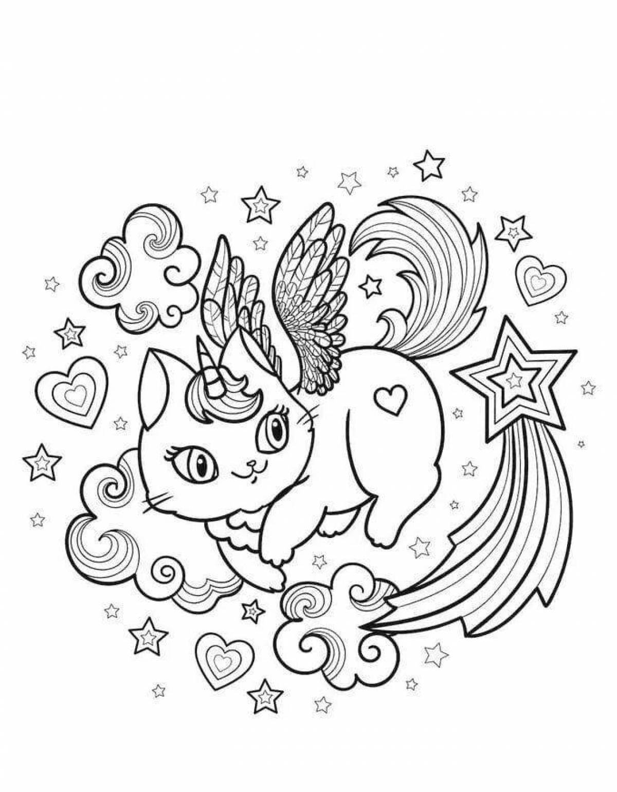 Раскраска Радужная бабочка Единорог кошка раскраска