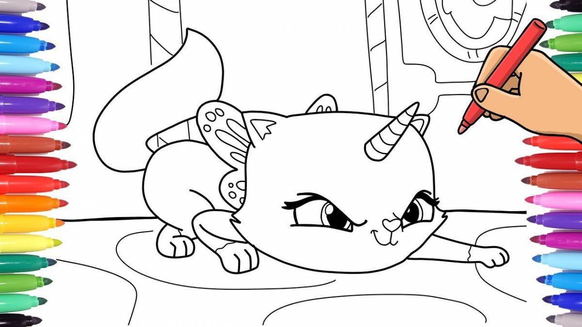 ![Фелисити Радужная бабочка Единорог кошка раскраска]()