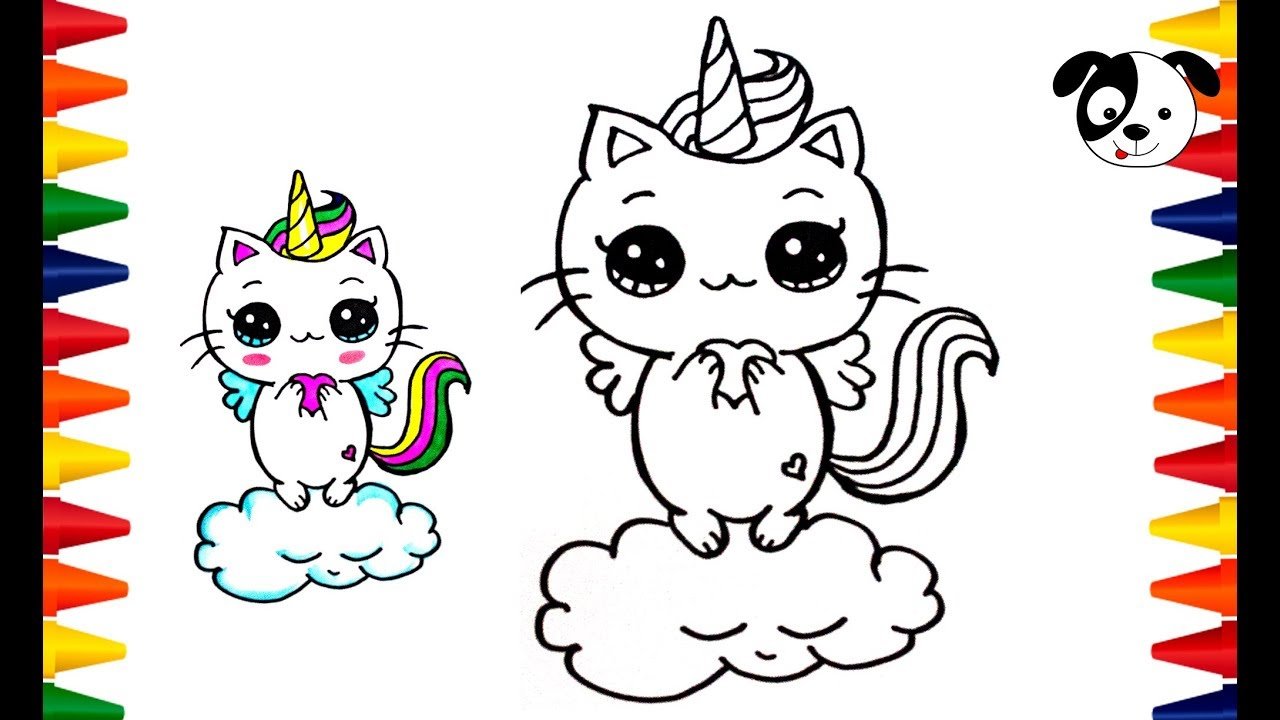 ![Раскраска котик Единорог]()