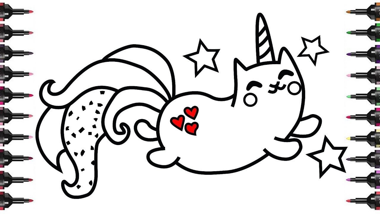 Кошка Единорог раскраска