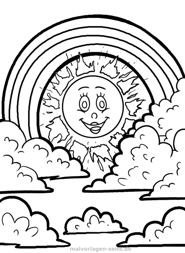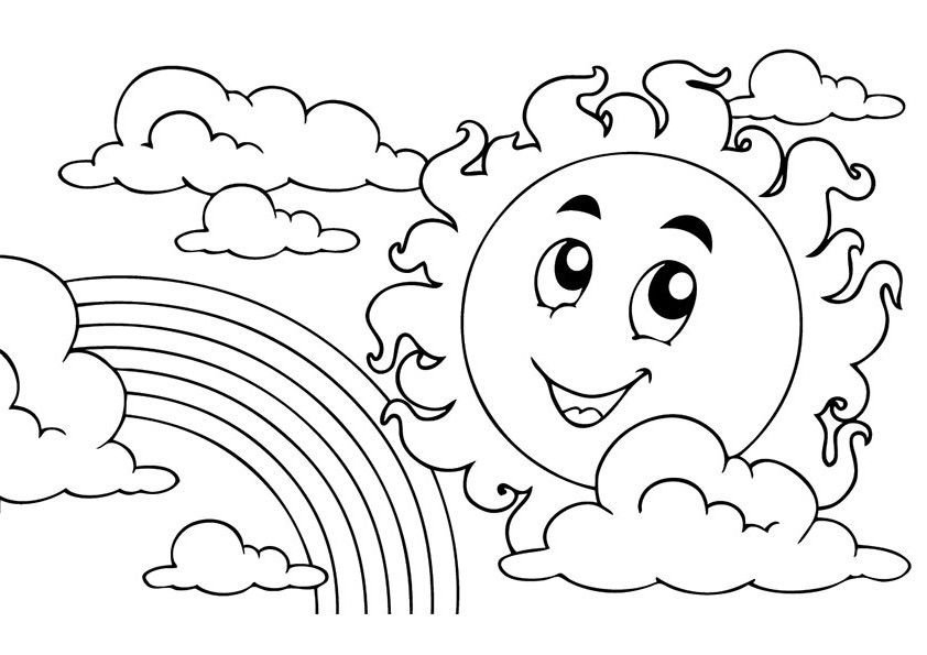 Радуга и солнце раскраска