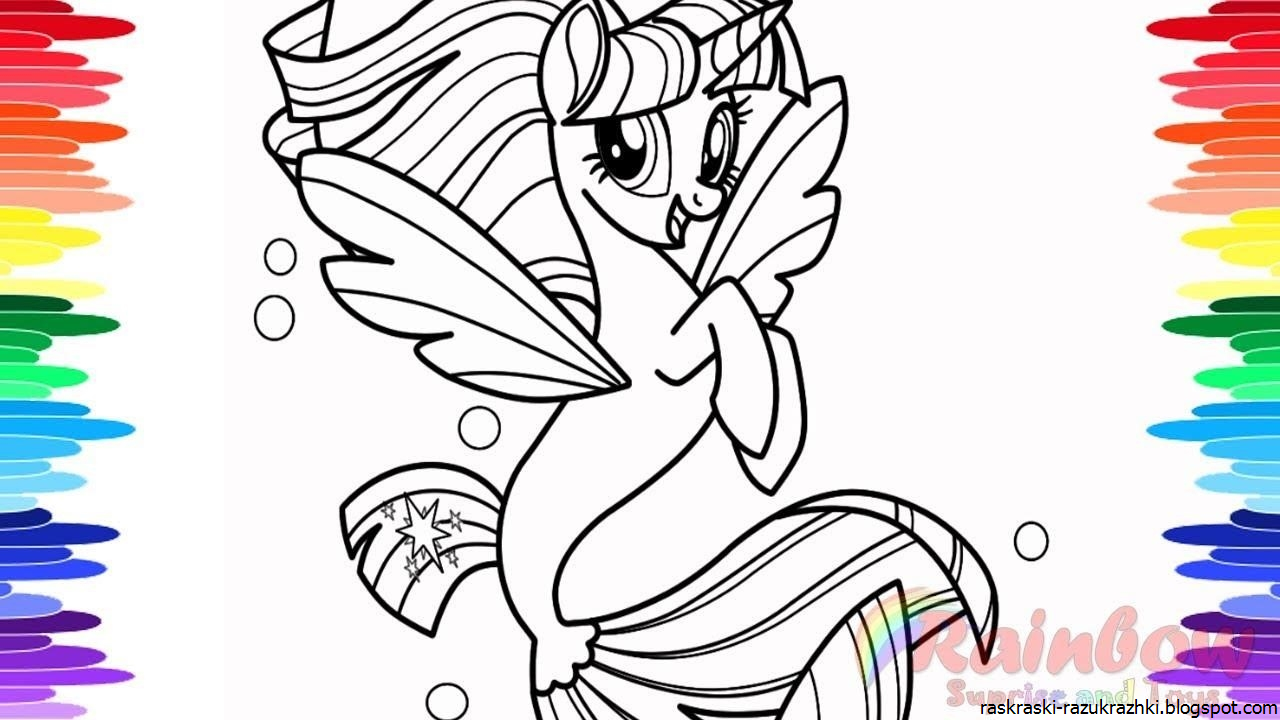 Разукрашки пони русалки