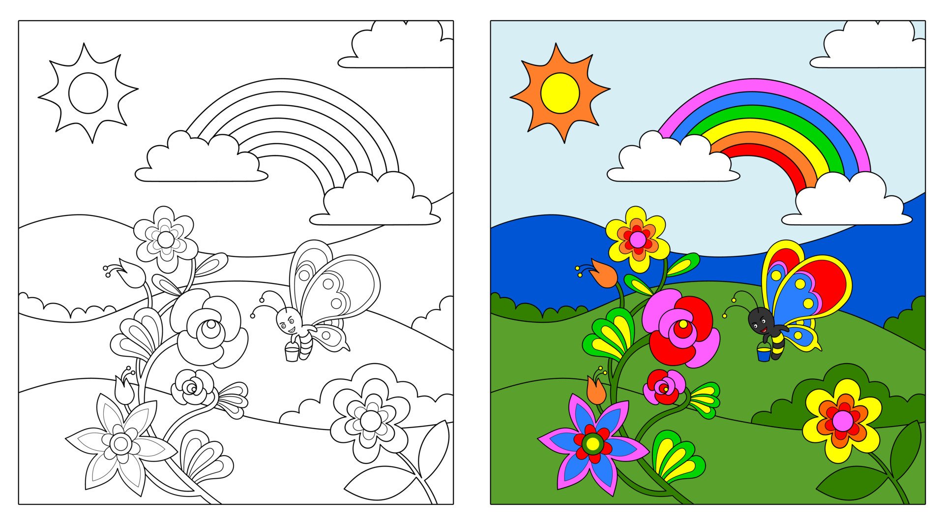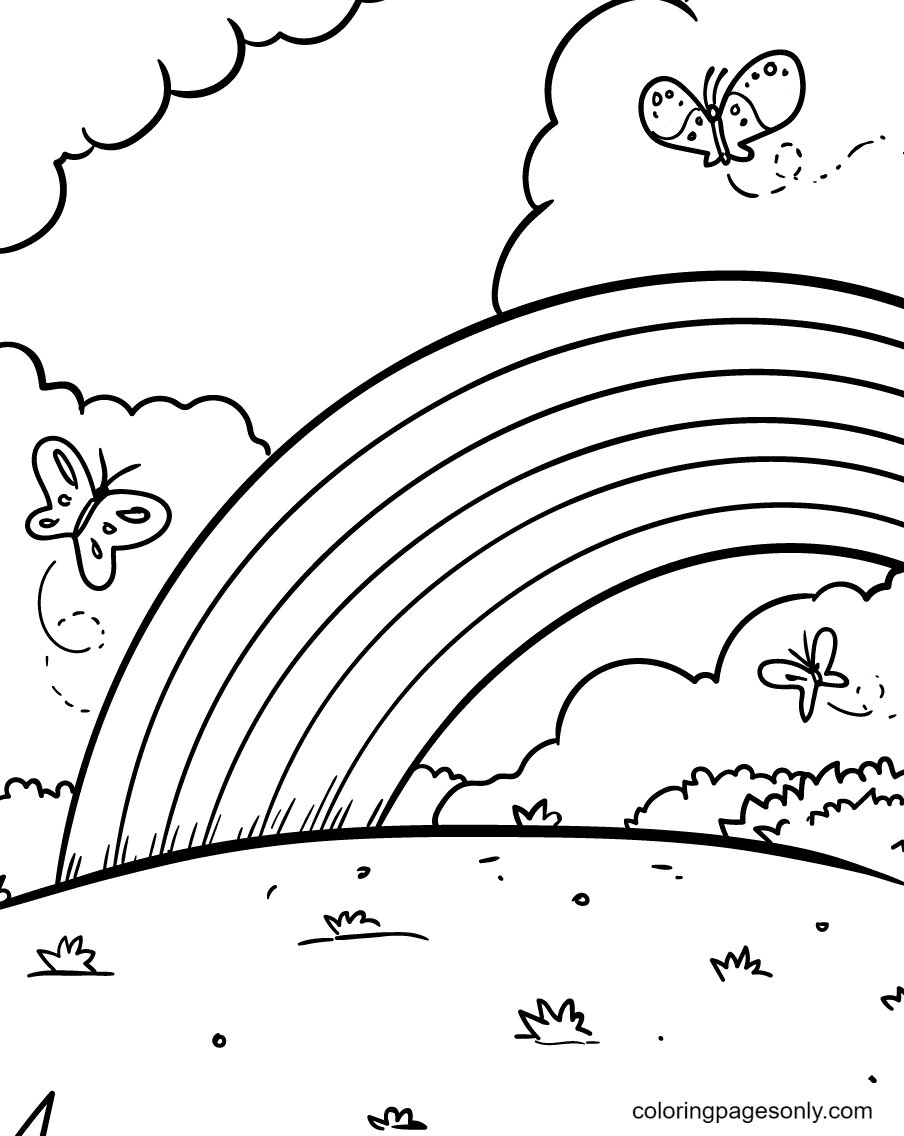 Раскраска Радуга и бабочка