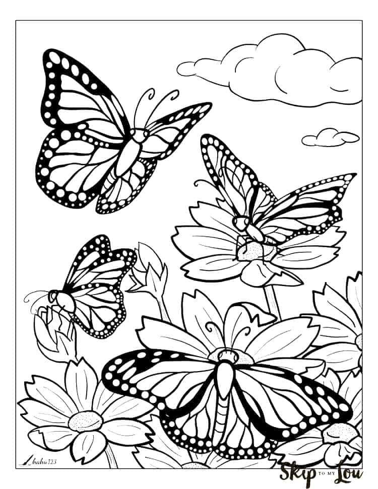 Раскраски для детей цветы и бабочки