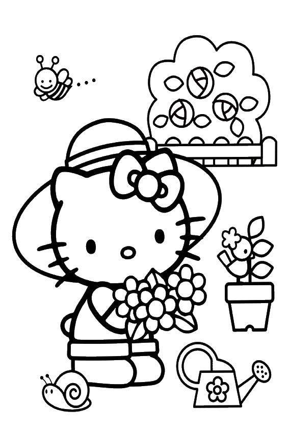 Кошка Китти раскраска