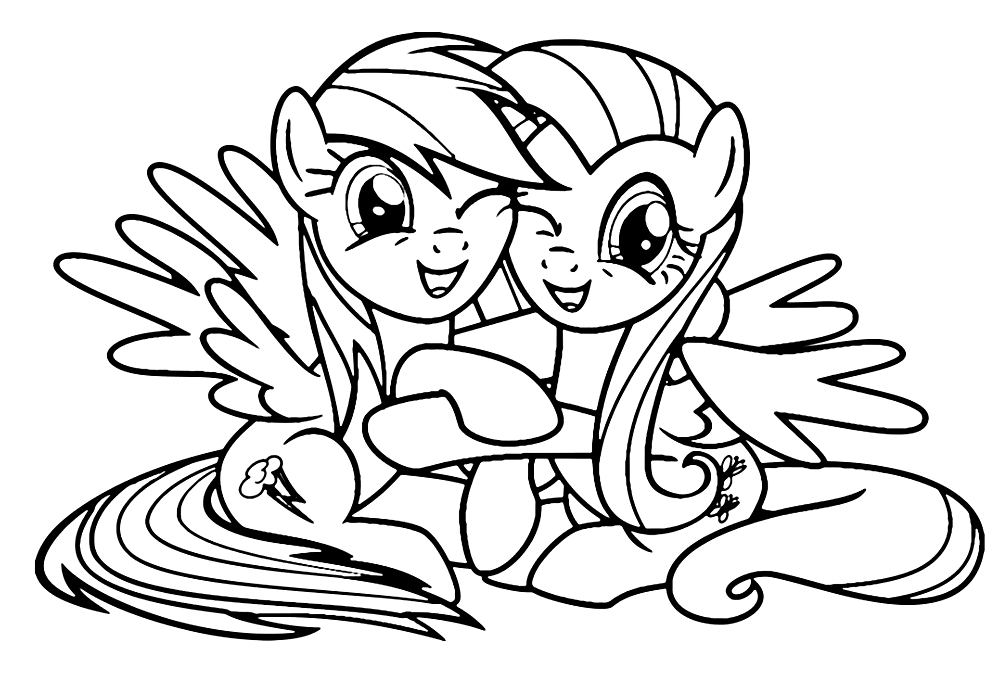 Раскраска пони Радуга Дэш и Пинки