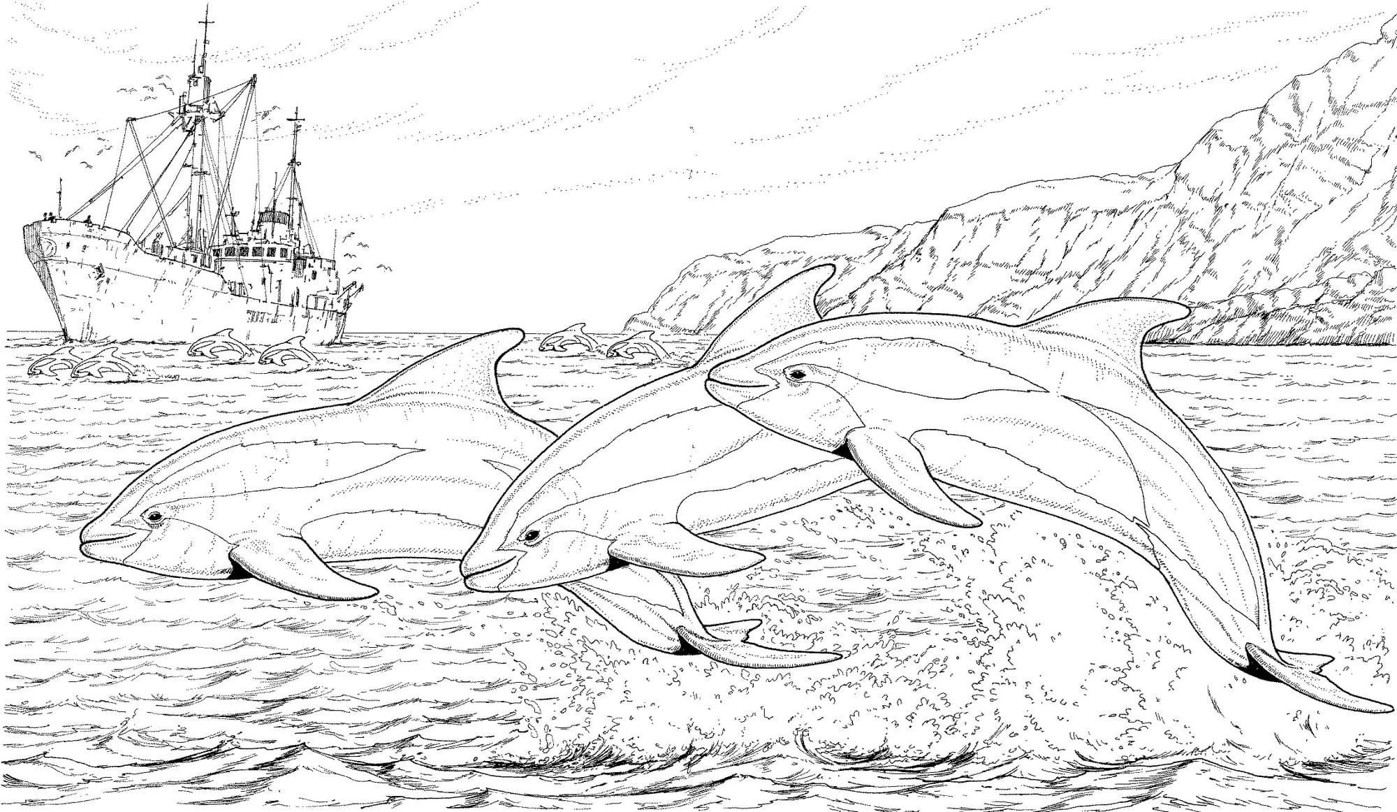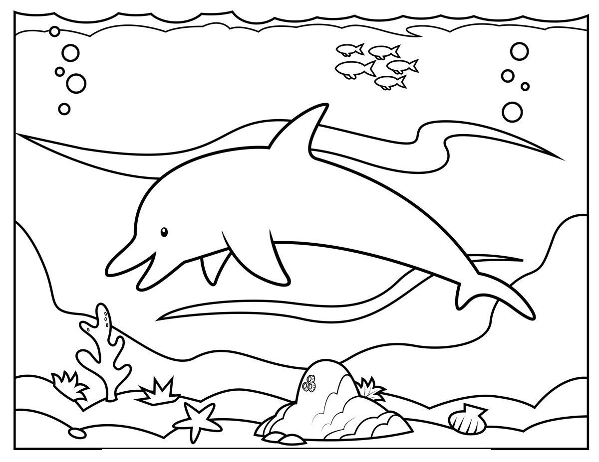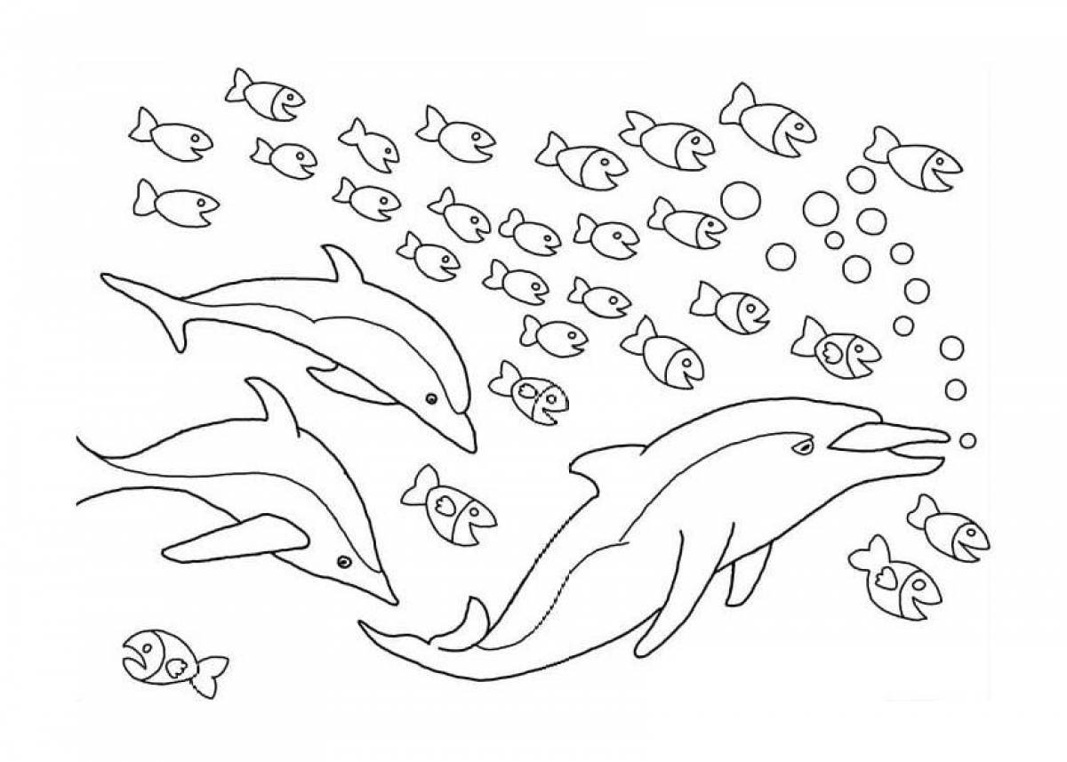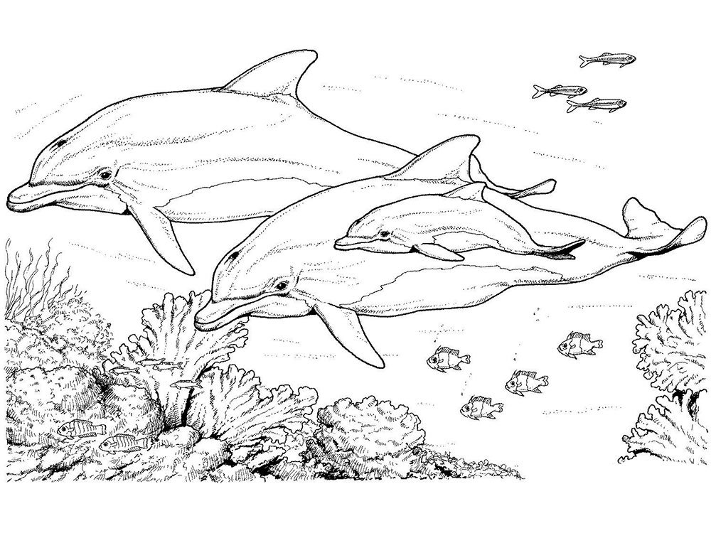 ![Раскраски дельфины и морские обитатели]()
