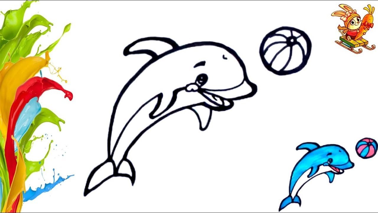 ![Дельфин раскраска для детей]()