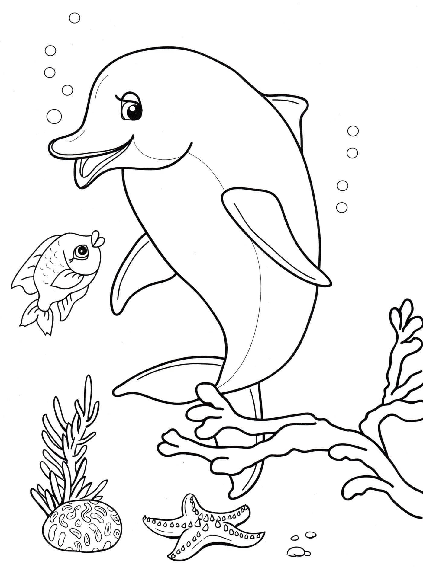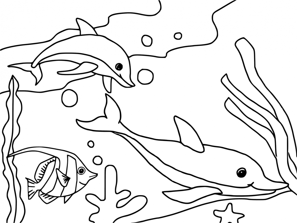 Раскраски дельфины и морские обитатели