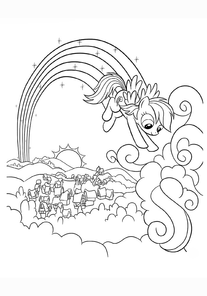![Раскраска пони Радуга деш]()